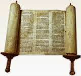 rolo manuscrito dos Cinco Livros de Moisés (a Bíblia, do Gênesis até o